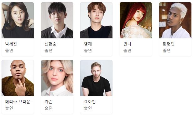 이들은 대부분 본명으로 시트콤에 출연하는데요. 생존력 만렙의 국제 기숙사 조교 세완(한국, 경영학과 3학년), 무해한 눈망울의 훈남 제이미(한국계 미국인, 신현승), 허풍 대마왕 쌤(한국계 호주, GOT7영재), K드라마 팬으로 출연하는 패셔니스타 민니(태국, 여자 아이들), 기숙사 불법 거주(?)중인 현민(이천출신 한국인), 원칙주의 유교보이 한스(스웨덴), 다혈질 미국 꼰대 카슨ㅋㅋ, 그리고 카사노바 테리스(트리니다드 토바고)까지 개성과 매력을 가진 캐릭터일 찰진 케미를 선보일 예정입니다.